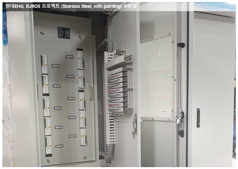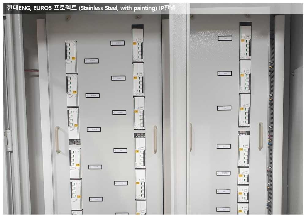 현대ENG, EURO5 프로젝트, IP판넬 페이지 정보 작성자 관리자 작성일19-10-28 13:15 조회20,461회 댓글0건 관련링크 이전글 다음글 목록 본문 공급품목 : IP판넬판넬크기 : 1850*2300*450판넬특징 : Stainless Steel 재질의 판넬에 painting 처리한 판넬입니다. Breaker 독일제품(Schneider)을 사용하였습니다. 댓글목록 등록된 댓글이 없습니다. 이전글 다음글 목록