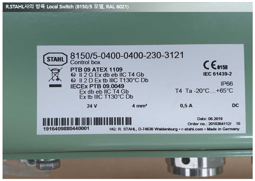 8150 Stainless Steel 316L 재질의 Enclosure에 Painting RAL 6021이 된 제품입니다.